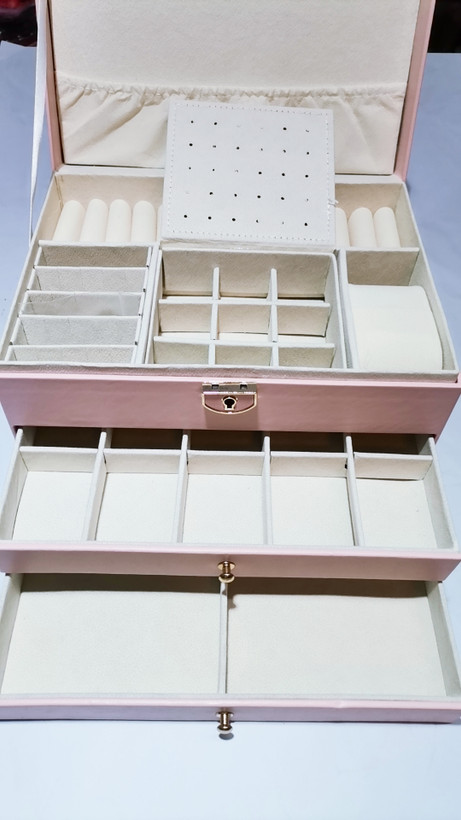 جعبه جواهرات بزرگ شامل دو کشو و قفل بسیار جا دار و با کیفیت وارداتی و درجه یک