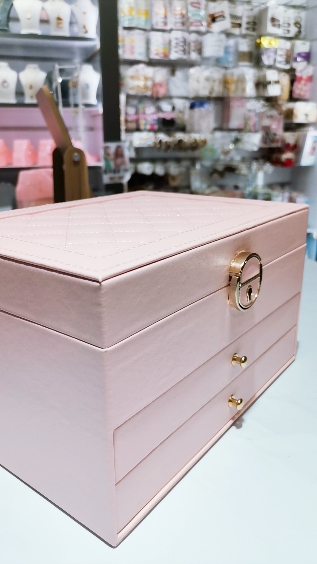 جعبه جواهرات بزرگ شامل دو کشو و قفل بسیار جا دار و با کیفیت وارداتی و درجه یک